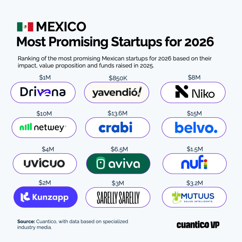 “Estas startups representan la diversidad y potencial del ecosistema mexicano”, comenta Cuantico VP. Abordan desde la transformación energética hasta la inclusión financiera, demostrando que México sigue consolidándose como uno de los hubs más activos de capital de riesgo en América Latina.”