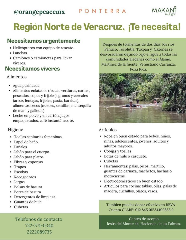 Ante esta emergencia, Ponterra México, organización dedicada al desarrollo sostenible y comunitario, ha desplegado a su equipo en campo para coordinar esfuerzos de rescate y asistencia directa. Con el apoyo de aliados como Orange Peace y Makani, la iniciativa ha distribuido agua purificada, víveres y artículos de primera necesidad, además de habilitar barcos, generadores, diésel y purificadores de agua para restablecer servicios esenciales.