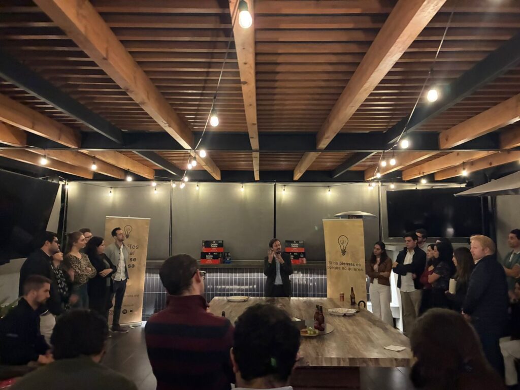 Iztiar y Santiago: Los “thinkglaos” se organizan cada mes y cada uno tiene un tema distinto que es desconocido para la audiencia. En cada uno invitamos a un ponente y le pedimos responder en 18 minutos a una pregunta que le hacemos en el momento, después abrimos el espacio a 40 minutos de preguntas y debate abierto con la audiencia. Al final, llegan pizzas y la gente se puede quedar a cenar y tomarse las cervezas que quieran pagando una entrada de 200 pesos. Esto nos genera un espacio para conversar sin prisa y conocer a personas nuevas, igual de dispuestas a encontrarse con los demás. Hasta el momento, tenemos presencia en CDMX y Puebla, pero siempre estamos en busca de personas proactivas que quieran empezar en su ciudad.