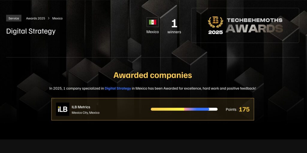 México, donde ILB Metrics recibe el reconocimiento, es el mercado de mayor volumen en habla hispana para el marketing digital, con una inversión estimada en más de 4,500 millones de dólares en 2024 y más del 75% de su población conectada a internet. Ser reconocida como la mejor en tres categorías para este mercado — frente a más de 600 competidores registrados solo en la Ciudad de México — es un logro de magnitud considerable.